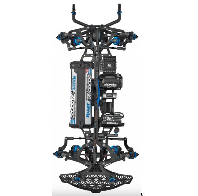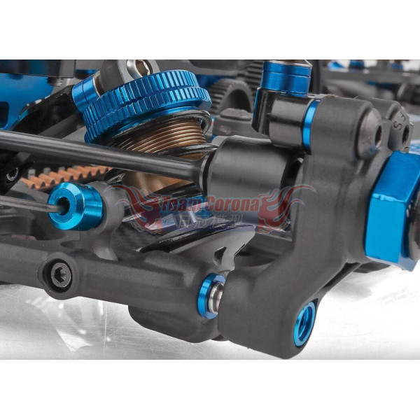 TC8 Steel-Spec Chassis: Lowers the center of gravity (CG) and optimizes chassis flex for high-grip surfaces.