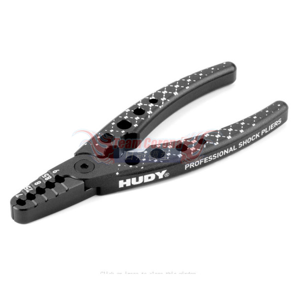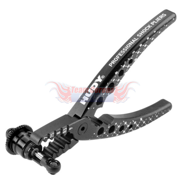 Professional aluminum pliers suitable for 1/10 TC shock absorbers to adjust the shock length setting. Helps to hold the shock shaft without scratching or damaging the parts. Allows for perfect setting and adjustments of the shock lengths. Specifically compatible with XRAY XLP2 shocks, as well as other modern 1/10 TC shocks which are in the same length range, which is 7.0-9.0mm of distance between the shock body and the lower ball cup.