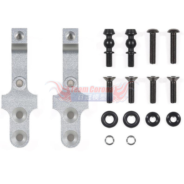 Used in place of standard plastic A27 parts, these aluminum damper stays give more secure front damper attachment and enhance steering feel. Slimline and given a silver anodized finish, they will also make a cool addition to your model. Small components such as 5mm ball posts, O-rings, screws and aluminum spacers are also included.