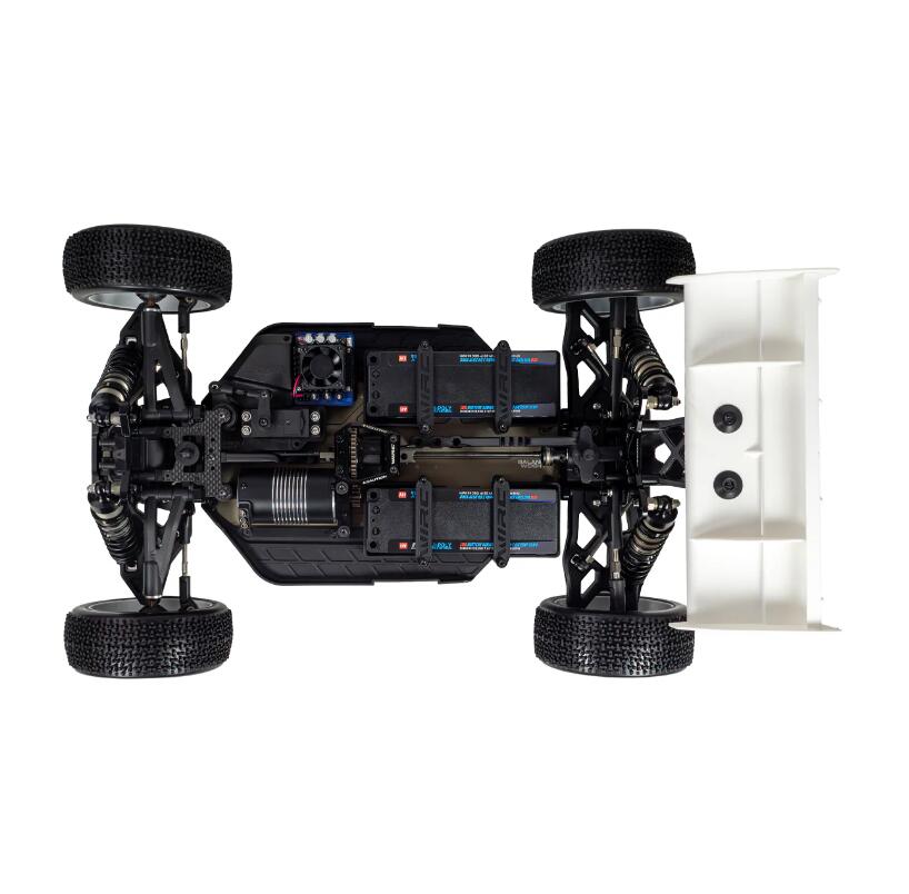 Its 4WD transmission system delivers exceptional traction and handling, while the lightweight aluminum chassis with stone guards ensures rigidity and protection. The aerodynamic body shell, front and rear differentials, and reinforced wing stay provide the perfect balance of speed and strength for competitive racing.