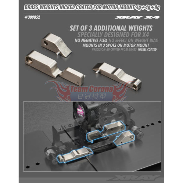 Xray 309852 - X4 Brass Weights Nickel Coated for Motor Mount 4g+4g+8g